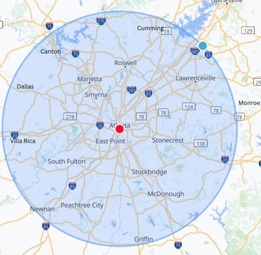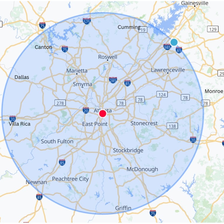 Cobb, Cherokee, Clayton, Dekalb, Douglas, Fayette, Forsyth, Fulton, Gwinnett, Henry, Newton, Paulding, Rockdale... and counties adjacent.